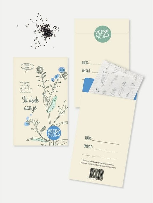 With the Forget Me Not, you can let someone know you're thinking of them. A doubly comforting gift: to receive and to see the flowers blooming. On the back, you can write the recipient's name and the reason for giving the seed packet. A special gift to give or send.