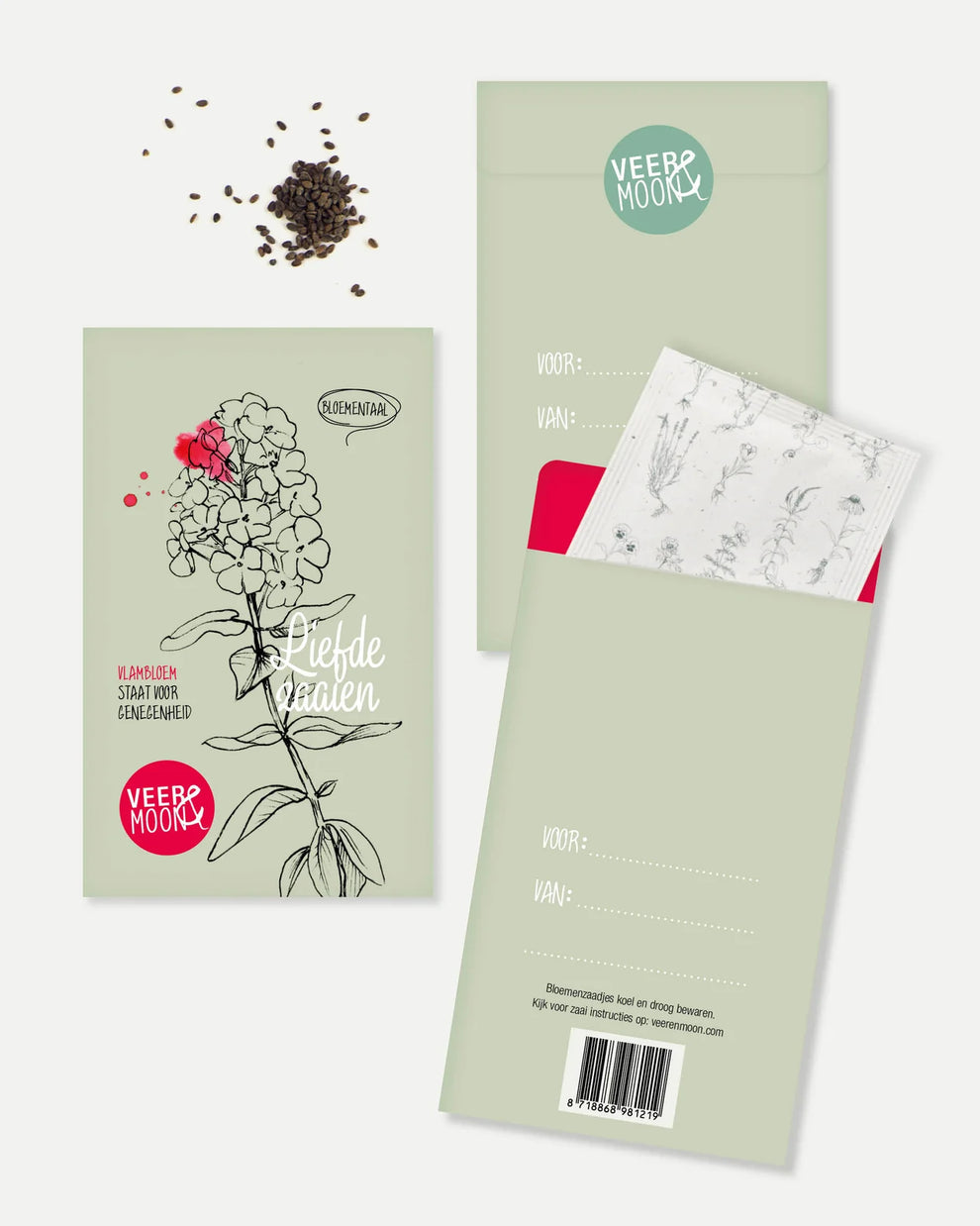 Fiery red flowers come from the seeds of the flame flower. With this seed packet, you'll give some affection and lots of love. Think of your loved one, your brother/sister, or your parents. Really, everyone could use a little love.