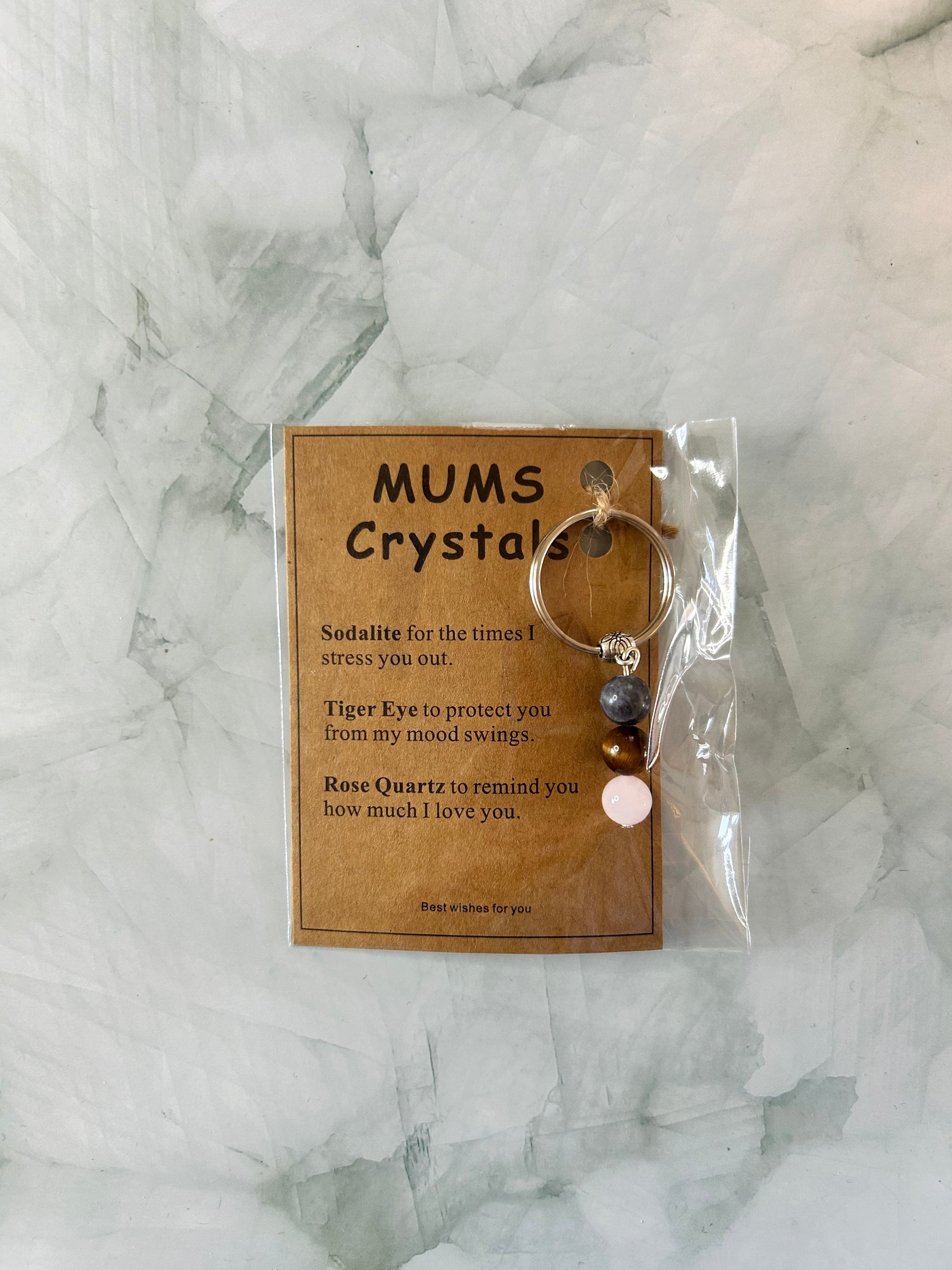 Elke sleutelhanger bevat drie unieke edelstenen, speciaal gekozen om hun eigenschappen die aangesloten bij jouw gekozen thema.