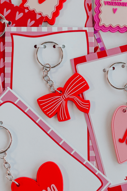 Elegante rode PVC 2D strik sleutelhanger. Compleet met bijpassend roze/rode kaartje ‘Speciaal voor jou’. Leuk voor tieners, vriendinnen of als stijlvol klein cadeautje. Praktisch, mooi en een klein gebaar dat dagelijks gebruikt wordt.