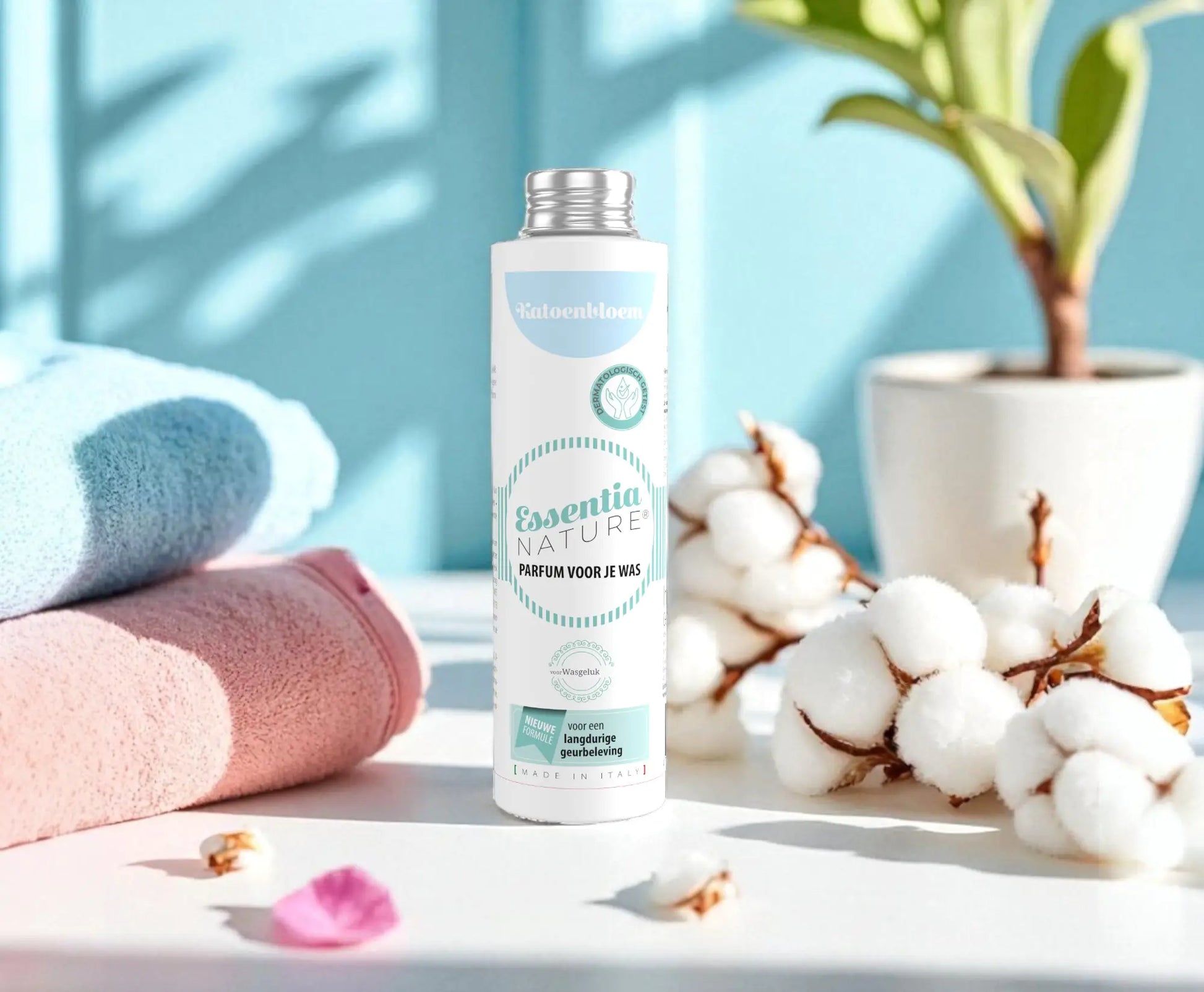 De geur van Katoenbloem is zacht, puur en verrassend onderscheidend. Een licht zoete mix van katoenbloem, kasjmier en witte musk die je was omhult met een verfijnde frisheid. Denk aan frisse lakens op een zonnige mediterrane middag – comfortabel, schoon en elegant.